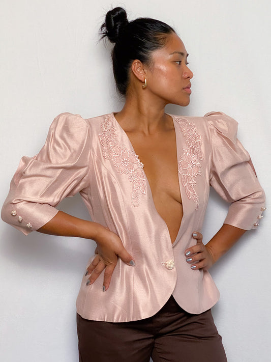 Sold out80s Light Pink Pleated Lace Jacket