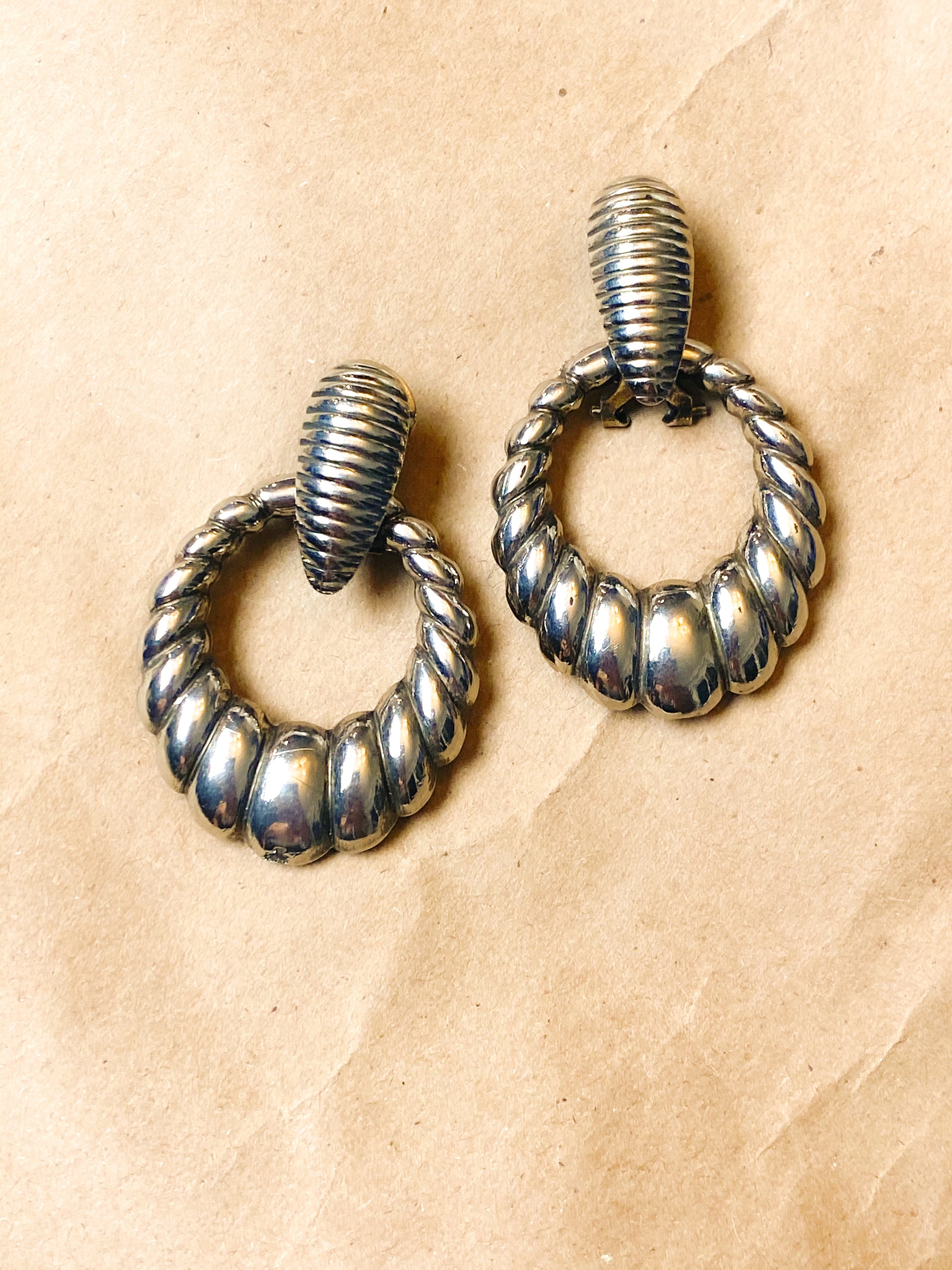 80s Silver/ Chrome Textured earring