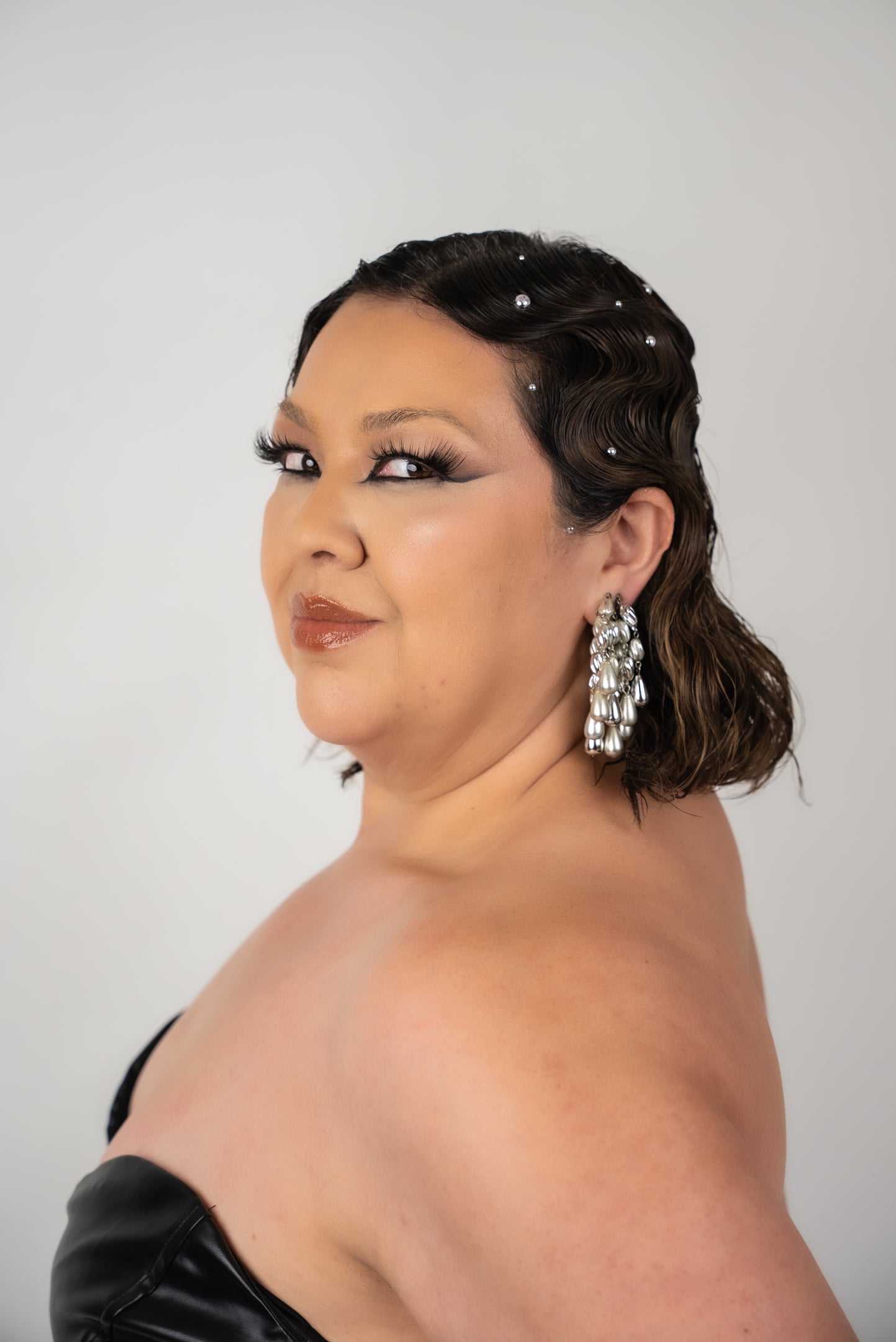 - Dangly string of silver pearls