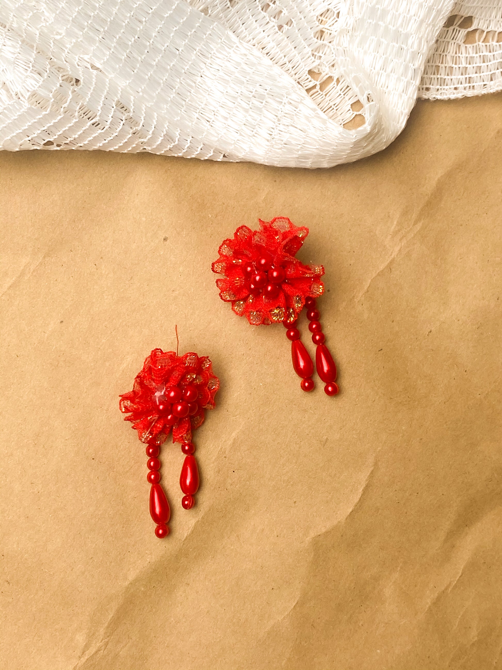80s Red Selena Tulle Beaded Earrings gives major Selena Quintanilla vibes.