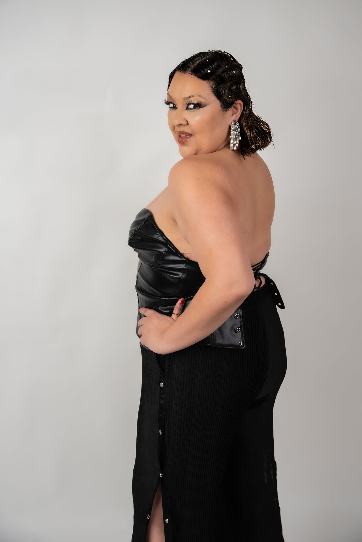 Pleather Black Lace up Corset